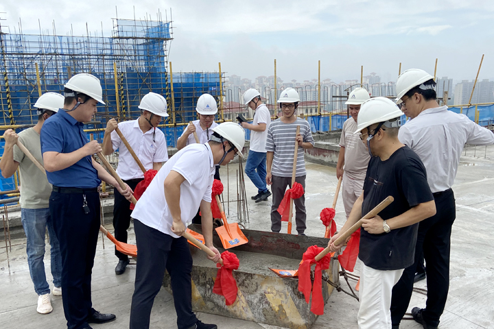 9月1日,山河建设集团海南公司承建的定安·牧屿云天项目喜封金顶。建设单位相关领导,公司副总经理李发生、运营部总监苏庆强、项目经理冯成及管理团队共同见证了这一重要时刻。