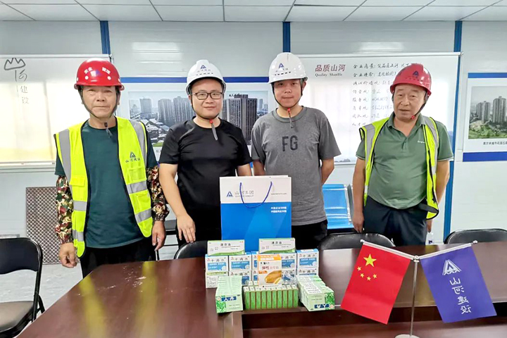 连日来,全国各地持续晴热高温,气温创下历史同期新高,多个地方的最高气温超过38℃。当前正值盛夏酷暑,建设者们仍奋战在施工一线,战高温、保进度,项目建设毫不松劲。为应对高温天气,保护劳动者的身心健康,山河建设集团总承包公司组织开展“夏日送清凉”活动,为在建项目一线作业人员送去十滴水、人丹、清凉油、凉茶等防暑降温用品,让大家舒心工作、平安度夏。