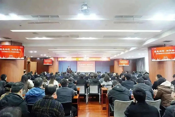 2月18日,龙年的第一个工作日,山河集团2024年新春见面会在集团总部召开。集团党委书记、董事长程理财对新一年的工作进行动员部署,明确全年的工作重点和主要任务。集团总部员工及在汉分子公司主要管理人员近200人参加见面会。